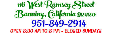 We are located in the heart of Downtown Banning right next to the Fox Movie Theater.